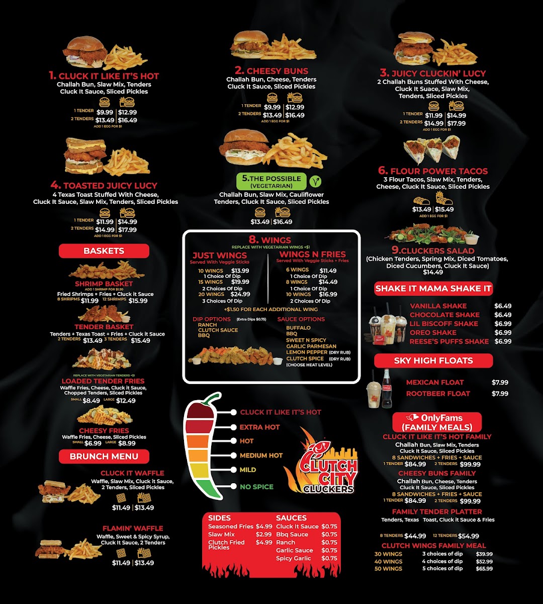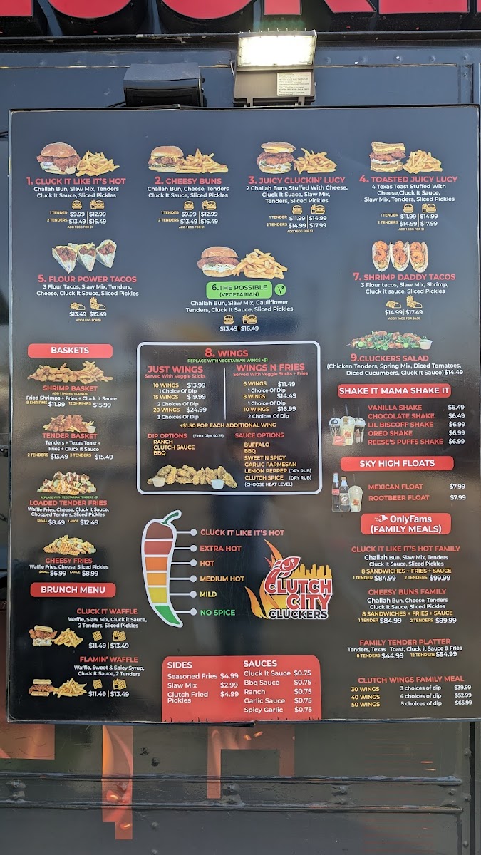 With a well-rounded menu offering something for everyone-whether you're in the mood for wings, family meals, or indulgent shakes-Clutch City Cluckers promises a flavorful and satisfying dining experience.